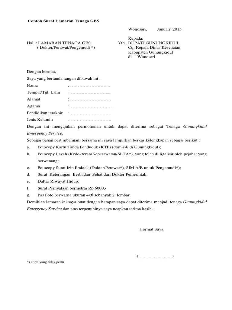 Berikutdilampirkan format surat lamaran dan surat pernyataan untuk memenuhi .